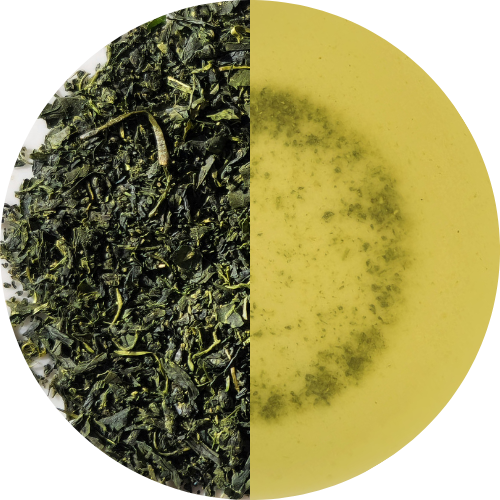 Caractéristiques Tamaryokucha premium de type fukamushi (vapeur prolongée), récolte 2025. Le tamaryokucha est un thé vert typique dont les feuilles sont roulées en forme de virgule contrairement au sencha roulé en aiguille.